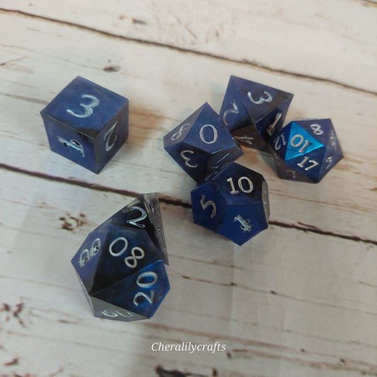 7 Piece Polyhedral Dice Set- Blue Mirror