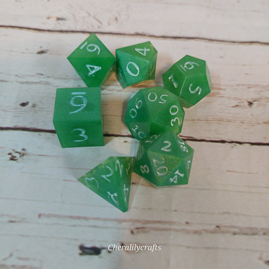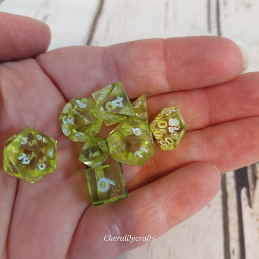 8 Piece MINI Green/Clear Polyhedral Dice Set