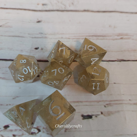 7 Piece Polyhedral Dice Set- Gold/Clear