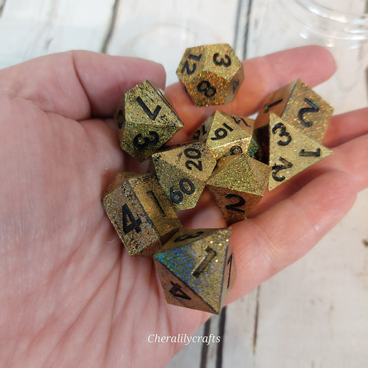 9 Piece Polyhedral Dice Set- Gold Glitter