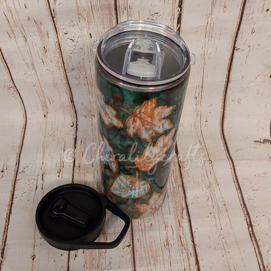30 oz Skinny Floral Wood/Patina Swirl Tumbler